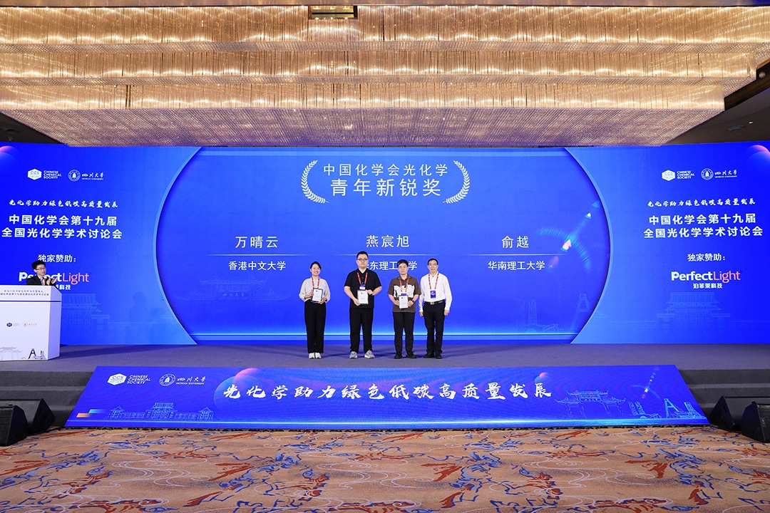 香港中文大学万晴云、华东理工大学燕宸旭、华南理工大学俞越荣获中国化学会光化学青年新锐奖。