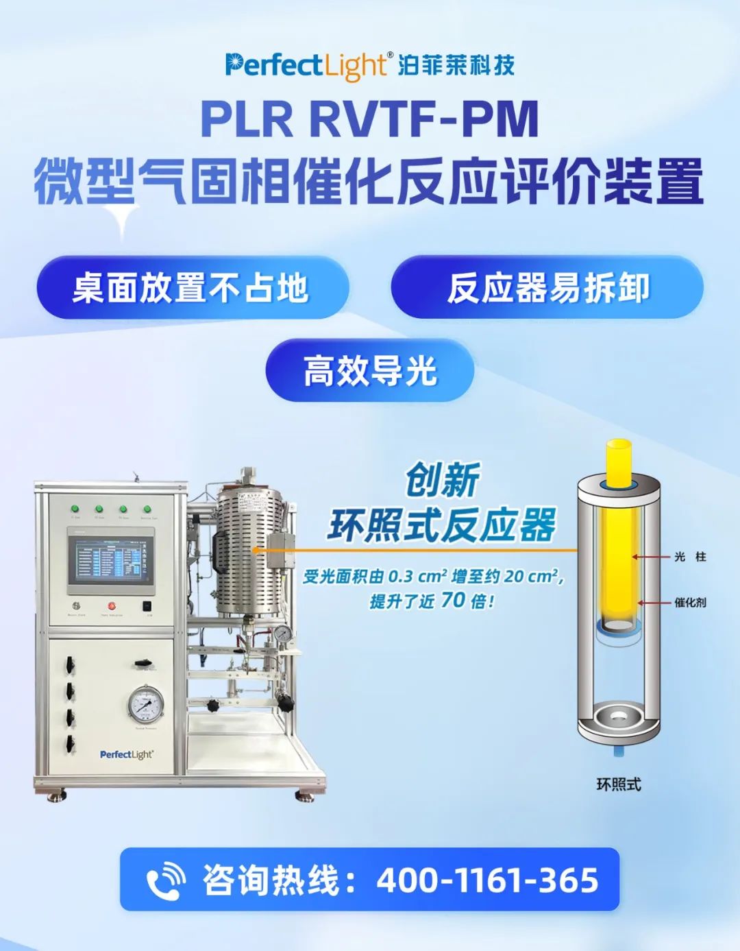 泊菲莱科技最新推出plr rvtf-pm微型气固相催化反应评价装置为系统研究光热催化反应提供了平台。该装置集成紧凑,桌面式设计,占用空间小,便于实验室灵活布置。
