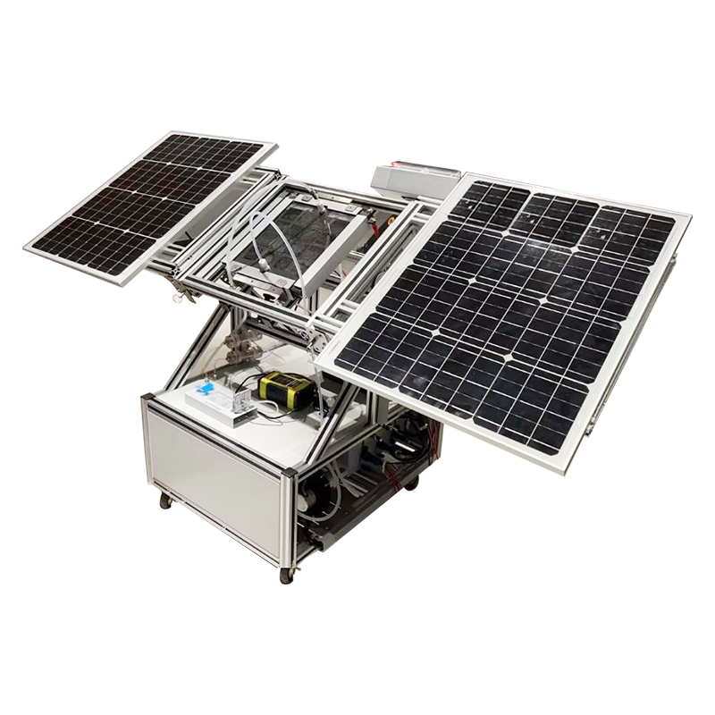 该系统以光电催化应用为基础, 光电催化水分解为目标, 构建户外应用示范型的光电催化水分解制氢设备,用于小试级别的示范应用展示,整个反应器光窗有效面积为20×20 cm,配合光伏发电系统,可在户外环境下监测、记录反应数据。