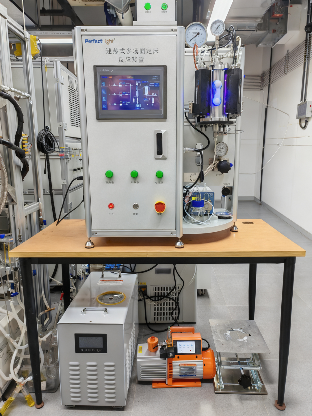 传统的催化反应装置往往局限于单一或两种能量场的叠加,尤其在多场耦合条件下,因不同能量形式的特性不同,在催化反应界面处,往往在设计上是机械式低效叠加,顾此失彼。一方面,不同的能量源到达反应位的功率比例严重失调,尤其是在发挥作用的光辐照的能量(有效波长的能量),往往远低于所需匹配热能功率;另一方面,无法精细探究各能量场间的协同机理,泊菲莱速热式多场固定床反应装置则打破了这一局面,速热式多场固定床反应装置以构建场能强化及多场灵活耦合为目标(光、热、微波),从电子态调控、反应动力学优化、物质传输强化等多维多改变催化反应路径,实现”1 1>2“的增强效应,该装置在固定床反应体系中首次采用了可以灵活更换的led光源,而非传统方案中几乎采用的氙灯光源,使得光波长这个关键参量可以在光热固定床反应中被解耦,活化气体底物更具有可选择性、更加精准。。