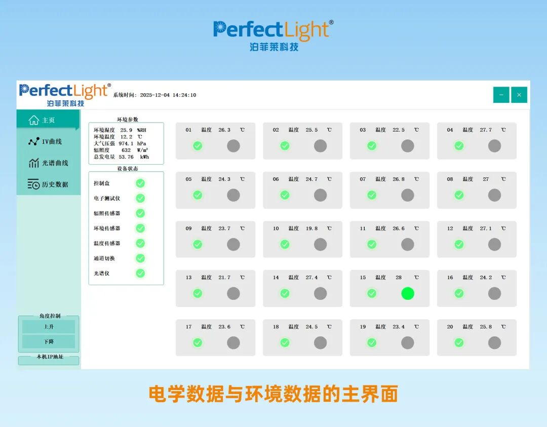 • 可视化监控界面,支持远程查看运行状态,科研人员在实验室即可看到实时的 i-v 曲线与功率趋势,无需频繁往返户外现场;